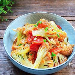 Put the tomatoes into the pot in advance and stir-fry them Tomato juice, use tomato juice to cook cauliflower, the tomato juice blends into the cauliflower, and the cauliflower tastes even more delicious!