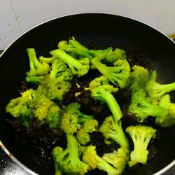 8.First stir-fry the fungus, then add the broccoli, salt and chicken powder, stir-fry evenly, and remove from the pan