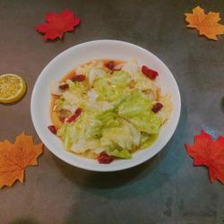 3.Put down the cabbage, Pour in light soy sauce, a spoonful of vinegar, a little MSG and a little salt.Stir-fry over medium heat for 2-4 minutes until the juice is reduced.