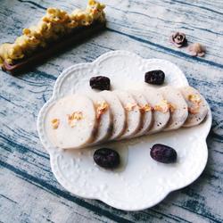 11. Slice the glutinous rice lotus root and drizzle with honey.