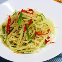 6.Add in the shredded potatoes, stir-fry several times, add white vinegar and salt, and remove from the pot