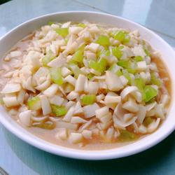 12.Pour in diced celery and diced yam and stir-fry for 1 minute