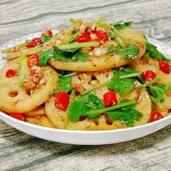 When blanching lotus roots, add a little white vinegar to prevent discoloration.The cooking time should not be too long, as it will affect the texture of the lotus roots.As for the taste, immediately put it in cold water after taking it out to keep the lotus root crisp.The chili noodles used here are the residue of chili oil, so there is no need to drizzle hot oil.