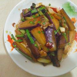 6. Pour in the eggplant and stir-fry evenly, then pour in the soy sauce flavor (add according to personal taste), finally cut the green onion leaves into sections, stir-fry and serve