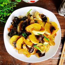 8. After opening the lid, stir-fry evenly, add black fungus, and stir-fry for a while until the fungus is cooked