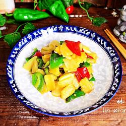 5.Add green and red chili peppers and a little salt, stir well until the flavor is absorbed