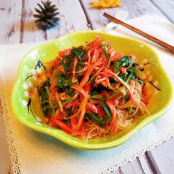 Blank the vermicelli till soft.A slightly firmer texture will make it more delicious.Blanch the spinach in cold water to keep the color green, and add seasonings according to your taste.