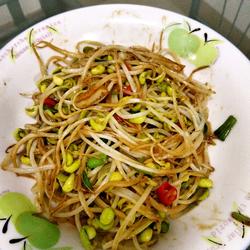 Stir-fried soybean sprouts When the time is right, the heat should be sufficient, and the time should not be fried for too long, so that it can be fried thoroughly while retaining the taste of the soybean sprouts