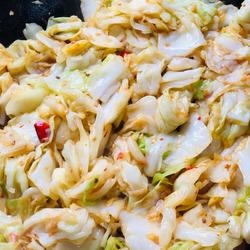 3. Heat oil in a pan, sauté garlic and dried chili until fragrant, then add cabbage and stir-fry