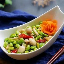 6.Pour in the edamame and seafood mushrooms and stir-fry for a while