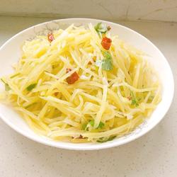 1. Cut potatoes into shreds and wash them with water.Starch, boil and blanch in water