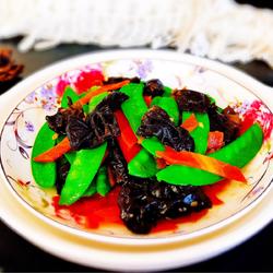 7. When the carrot slices are soft, add the fungus and snow peas and stir-fry.