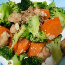 10. Add broccoli and carrot pieces and stir-fry.