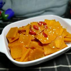 4. Heat oil in a pan, add pumpkin and stir-fry for one minute