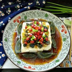 8. Take a picture of the finished product, and a refreshing and delicious preserved egg mixed with tofu is completed.