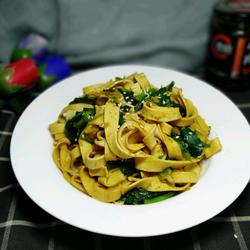 7. Heat oil in a pan and add ginger Stir-fry the shredded spinach until fragrant