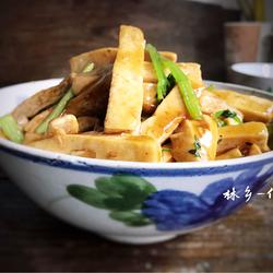 6.Add dry tofu and stir-fry until the surface is slightly yellow