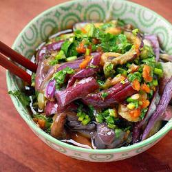 4.Crush the eggplant with chopsticks, add flavored Delta, sesame oil, rice vinegar, salt, mix well and sprinkle with coriander before serving