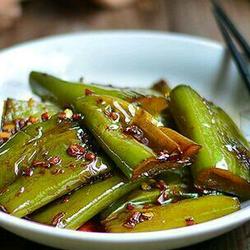 4. Do not put oil in the pot.Add the pepper segments to the pot.Pan-fried tiger skin pepper