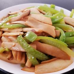 4.Pour the king oyster mushrooms into the pot and stir-fry, still on high heat.Pleurotus eryngii is easier to cook because it has been blanched.It takes about a minute.Add salt and light soy sauce and stir-fry for another minute.Add the green pepper to the pot and stir-fry over high heat.Add a little water and continue to stir-fry until the soup becomes soupy.Just absorb it and put it on the plate!