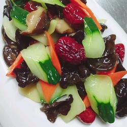 5. Blanch the fungus for about thirty seconds Next, cucumbers, carrots, and red dates.Blanch them together for another fifteen seconds