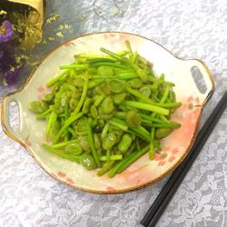 3.Put the garlic sprouts and broad beans into a bowl and set aside
