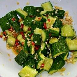 6.Pour it on the patted cucumbers and mix it with chopsticks before eating