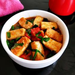 5.This is tofu coated with flour, not too much flour, just a thin layer can.