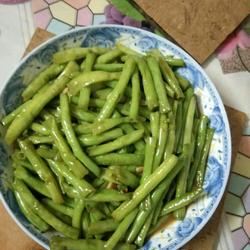 4.Add in the beans and fry until medium cooked, add salt and chicken essence