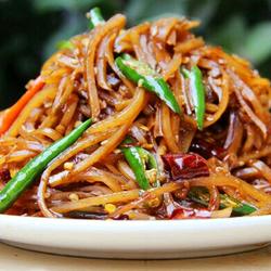 5.Put shredded pickles into the pot, turn off the heat and mix well