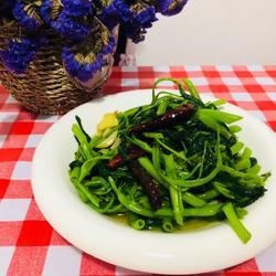 4.Add water spinach, fry until cooked and serve on a plate