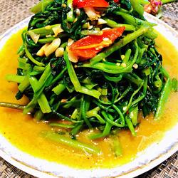5.Add water spinach and stir-fry them