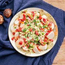 10.While it’s hot Toss all ingredients together.The taro has already absorbed the salty and oily aroma of the chopped pepper, and its glutinous and sweet flavor is mixed with a slight spiciness.