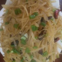 Potatoes (two) | Appropriate amount of oil, pepper, pepper, salt, vinegar, chicken essence, a little green onion ( ) |