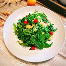 5.Put in the soaked and rinsed mulberry leaf sprouts.