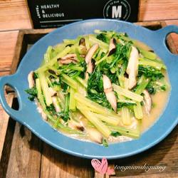 6.Add chopped celery and stir-fry, add appropriate amount of sugar, salt, Totole Continue to stir-fry the fresh chicken juice.
