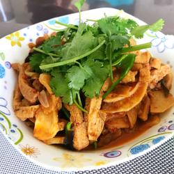 1. Slice the potatoes, soak them in cold water, remove the starch, drain them, fry them in a pan until golden brown and take them out; cut the tofu into large pieces, fry them until golden brown, and then cut them into strips.
