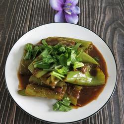 Just fry the chilies until they are the color of tiger skin.Don't fry them too big and the color won't look good.There is no salt in this dish.If you have a strong taste, you can add some salt when stewing.