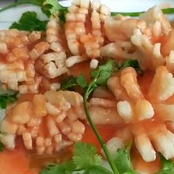 11. Fried Put the chrysanthemum and oyster mushrooms on a plate, and pour the cooked tomato juice on the chrysanthemum and oyster mushrooms