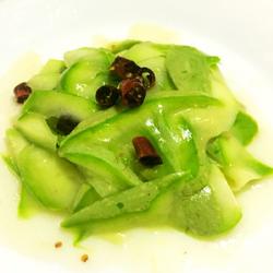1. Slice the zucchini into slices like roast duck, without the gourd seeds, and then marinate them with salt for ten Let it sit for five minutes, then blanch it in a pot of boiling water and immediately remove it from the cold water.