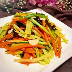 1.Main ingredients: Remove the old roots and skin of asparagus, peel the carrots, soak the fungus well, remove the leaves of celery and wash it.