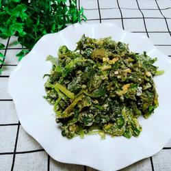 4.Add two tablespoons of starch and mix well, then add flour, little by little, until the surface of the leaves is coated with a thin layer of flour.