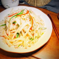 3.Peel the lotus root and cut into shreds.
