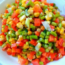 8. Add a little water to the starch, hook it into step 7, stir-fry for a few times and it is ready to serve..A plate of delicious colorful corn kernels is ready, which is both a feast for the eyes and a feast for the mouth, and the nutritional balance is also great!