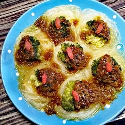 12.Put the garlic vermicelli and broccoli into a boiling steamer and steam over high heat for 8-