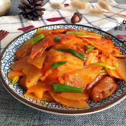7.Add in the shredded green onion and stir-fry well and turn off the heat.