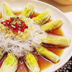 7. Control the moisture of the vermicelli and spread with baby cabbage