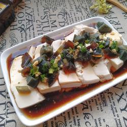 7.Put the preserved eggs on top of the tofu as shown in the picture