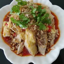 10. Take out the chicken, cut it and place it on the plate, pour the sauce on the chicken.