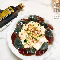 4.Put the tender tofu on the plate and put the preserved eggs around the edges